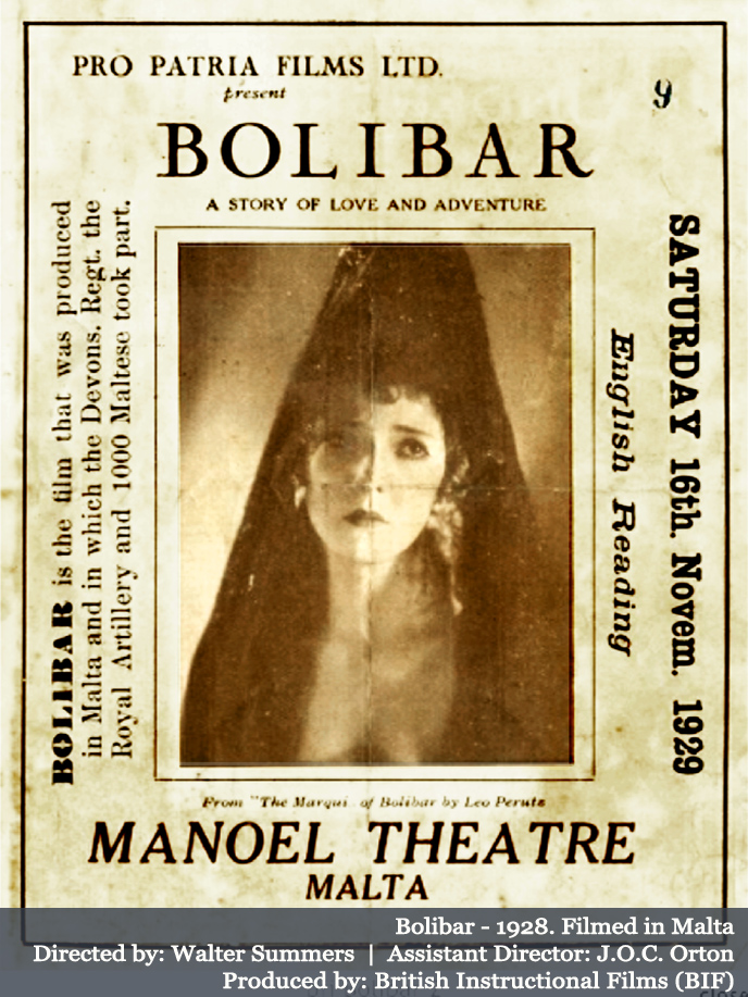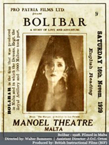 Bolibar was shot in Malta in 1928 and also directed by Summers with Asst. Director JOC. It's still played at key public events in Malta leased from BFI who hold the copyright. -