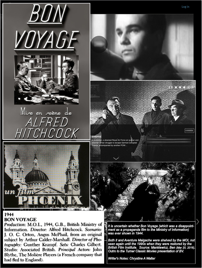 Bon Voyage - ww2 M.O.I. War Effort Film - it was directed by Alfred Hitchcock and JOC is the uncredited writer of this 'call to arms' spoken in French in 1944.