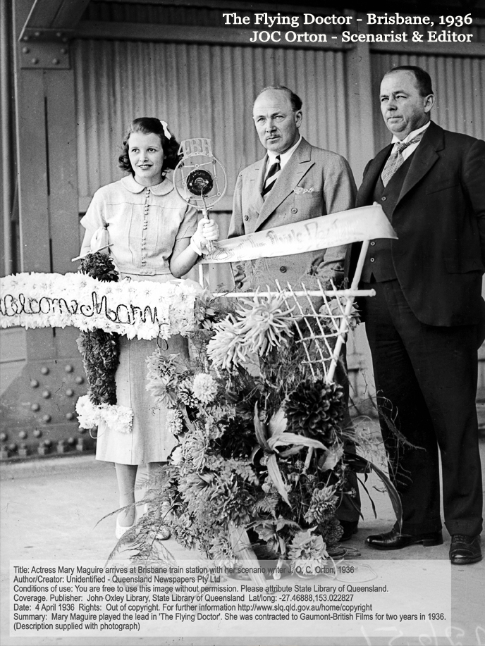 Mary Maguire & JOC arrive at Brisbane Train Station in 1936 for the Film Premier of their ill-fated 'Flying Doctor'. -